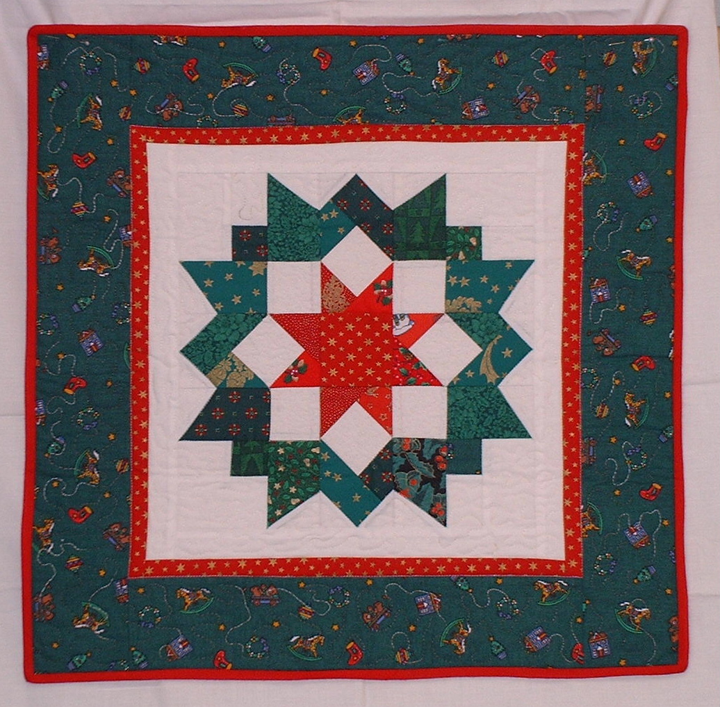 Kerstquiltje met ophangstrook aan achterkant model 1 €20,- |